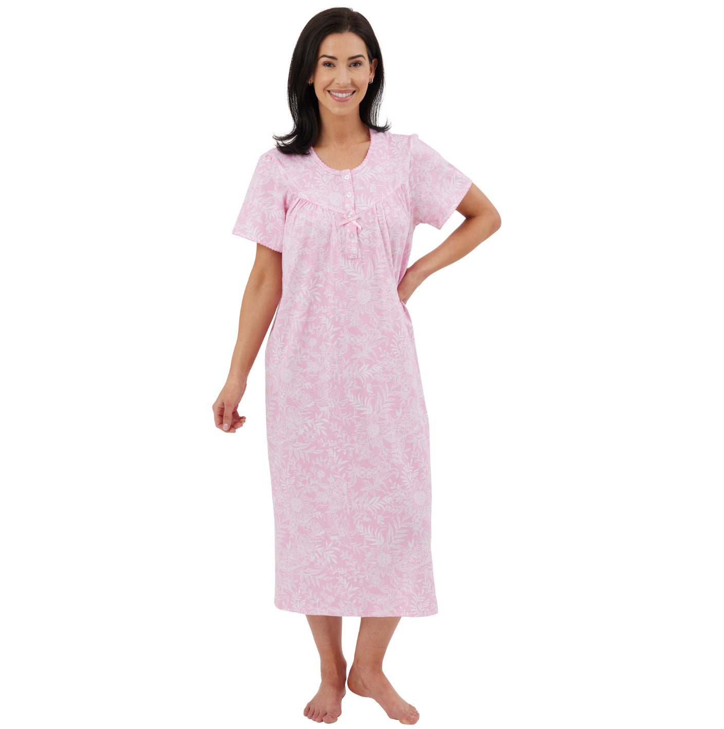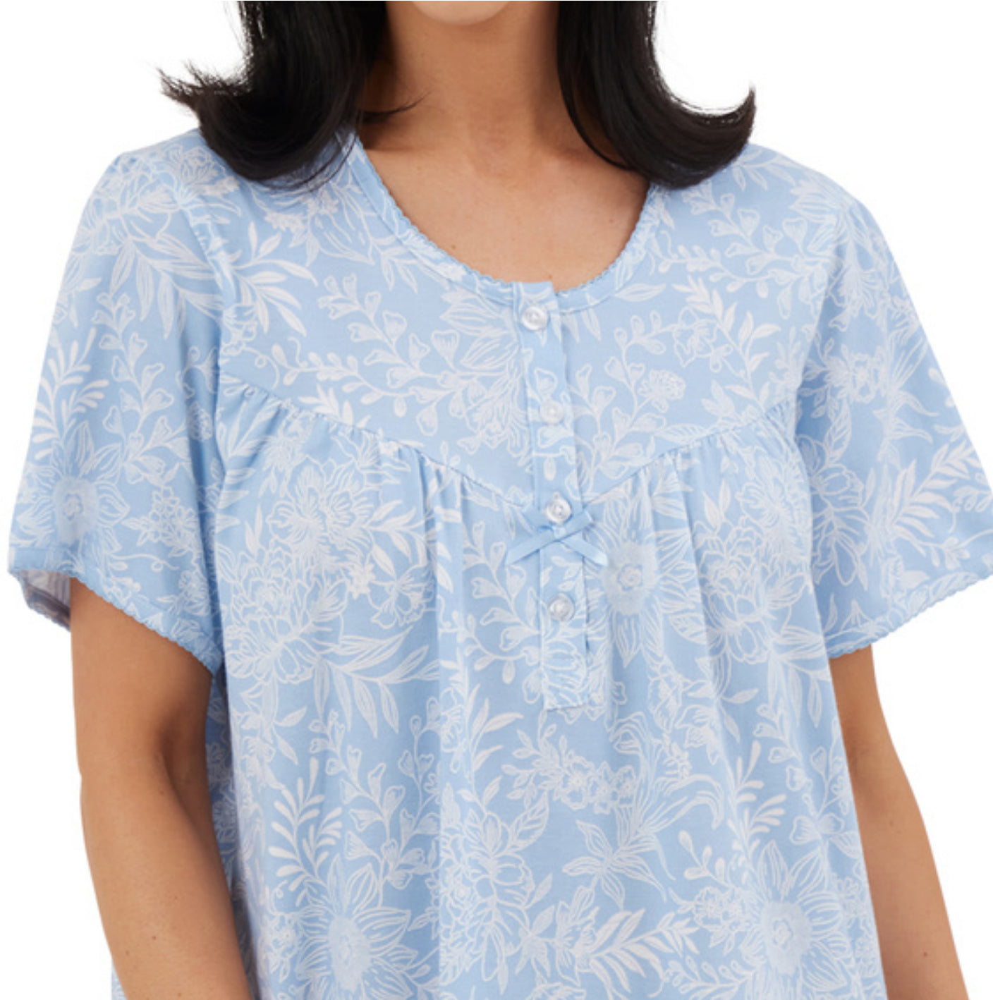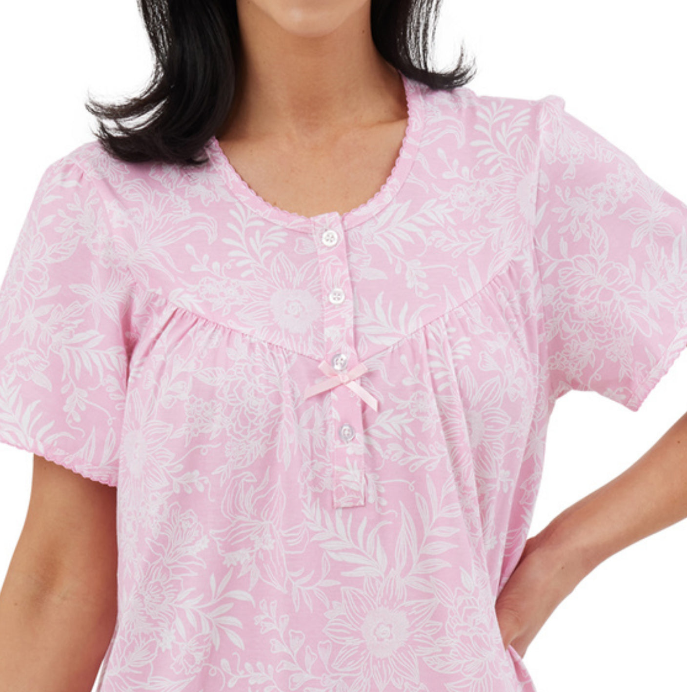 100% Cotton Jersey Floral Print Short Sleeve 45" Nightdress