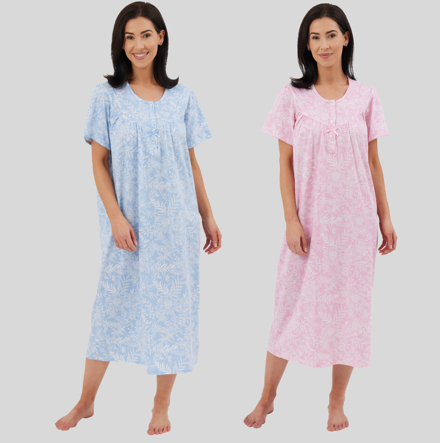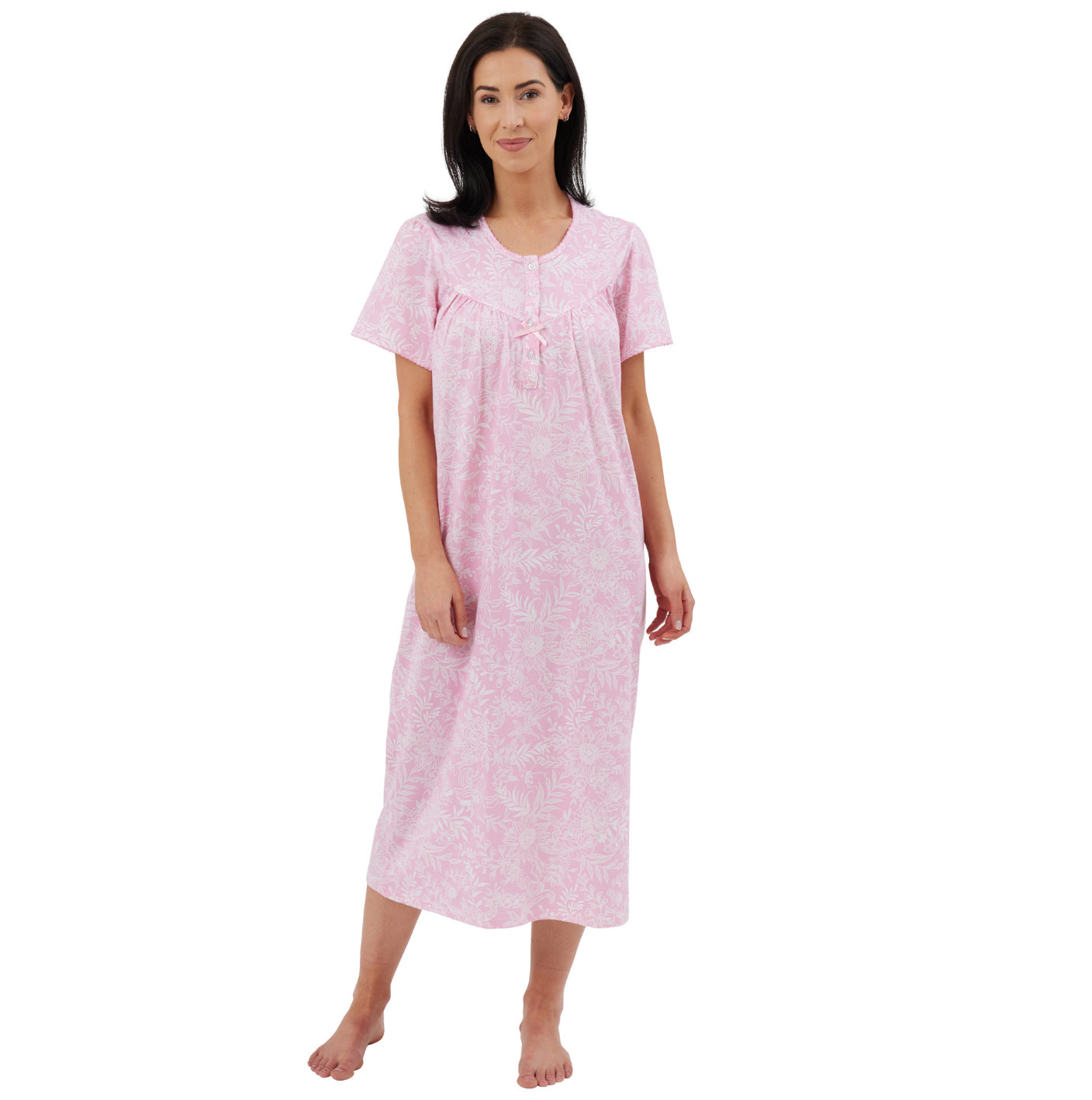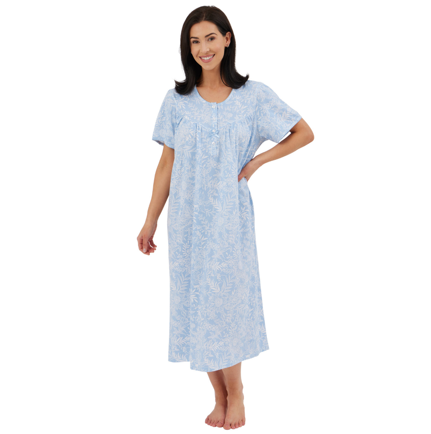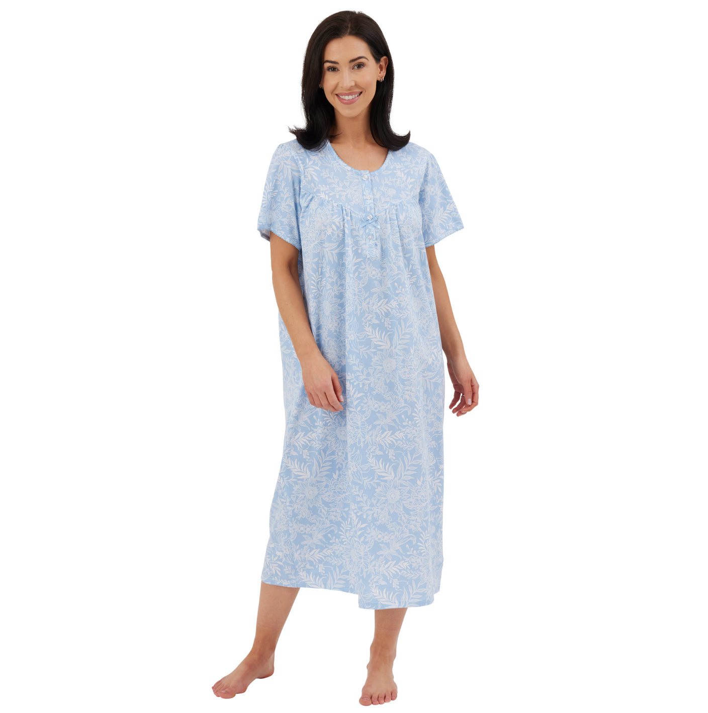 100% Cotton Jersey Floral Print Short Sleeve 45" Nightdress