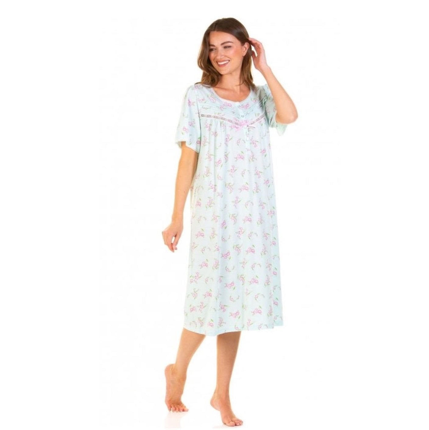 Achieve comfort with our Cotton Rich Short Sleeve Nightdress, adorned with a beautiful floral print and a calf-length design.