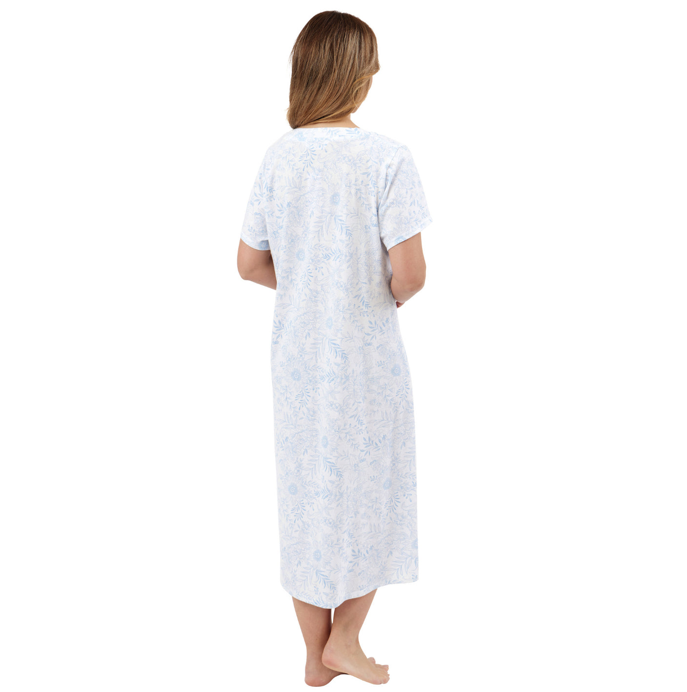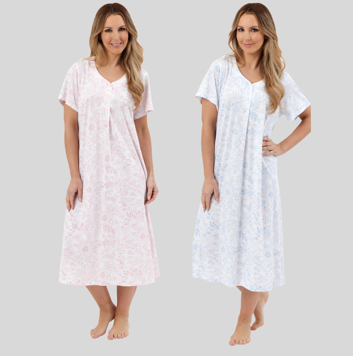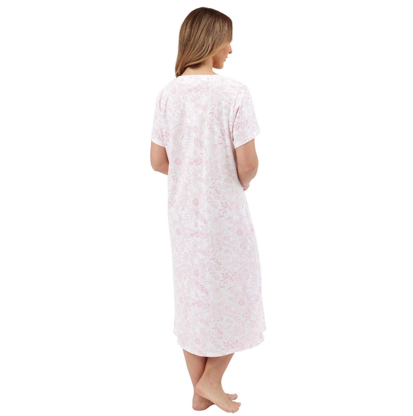 Poly Cotton Jersey Floral Print Pleat Front Short Sleeve 45" Nightdress