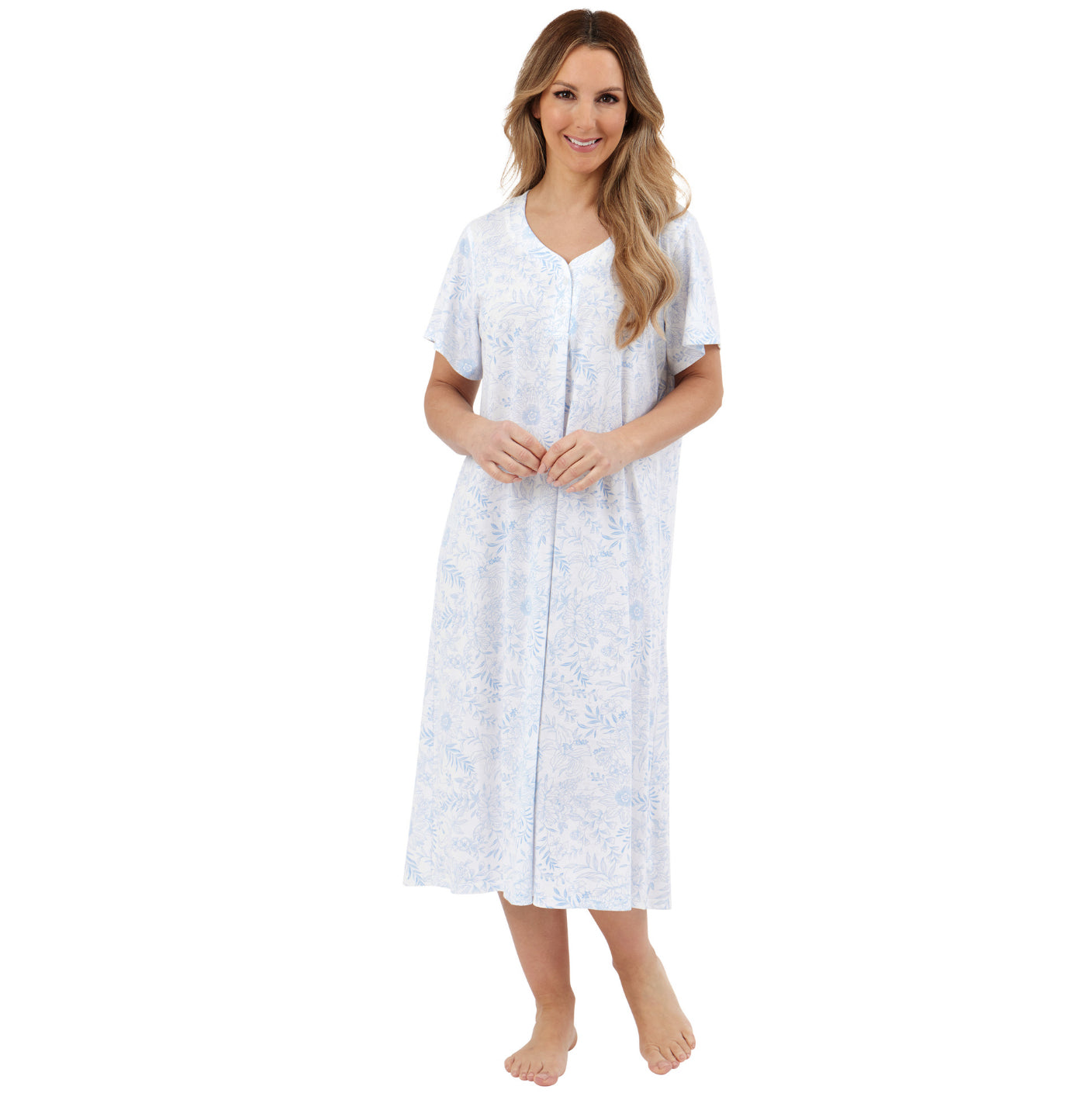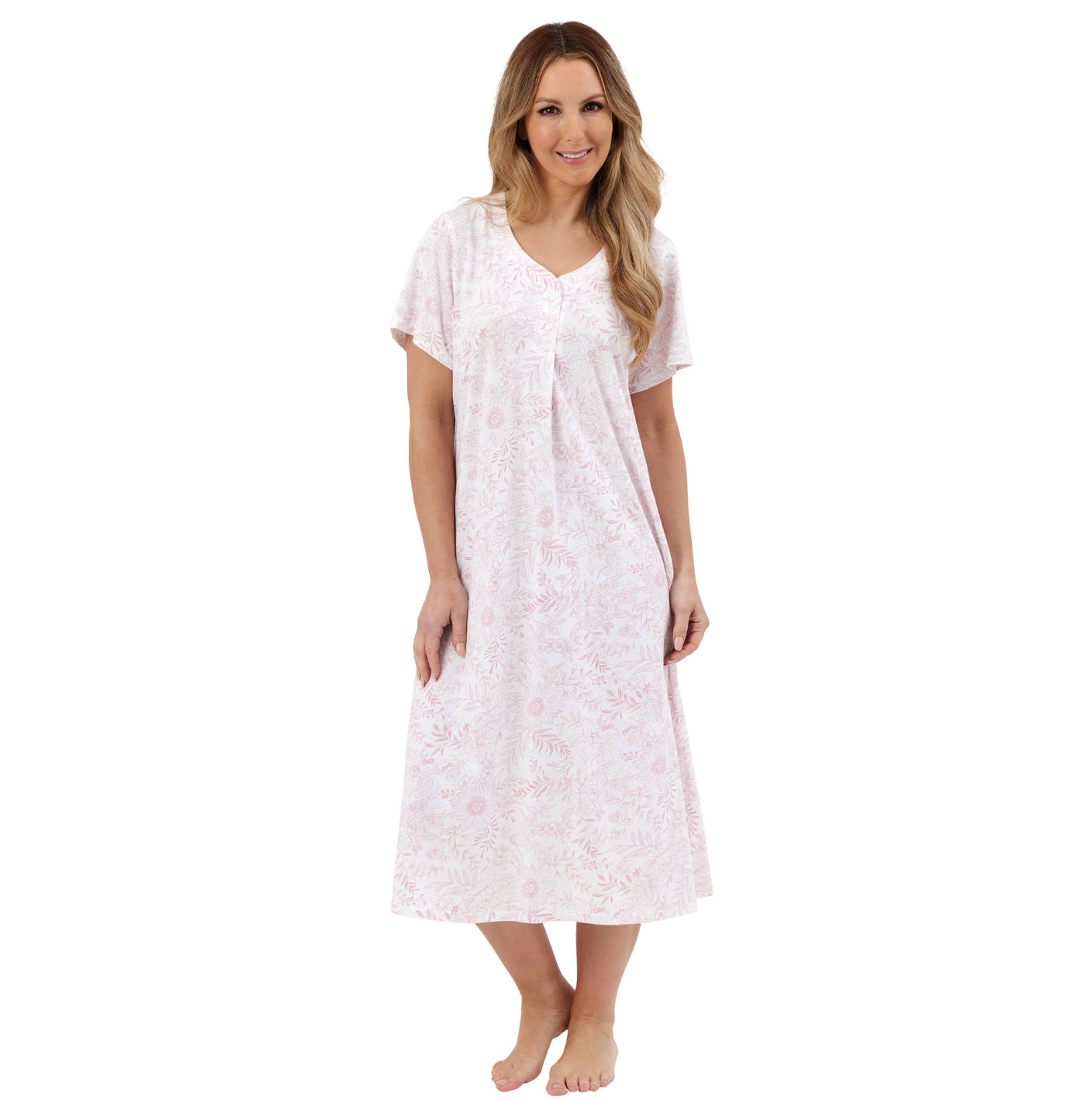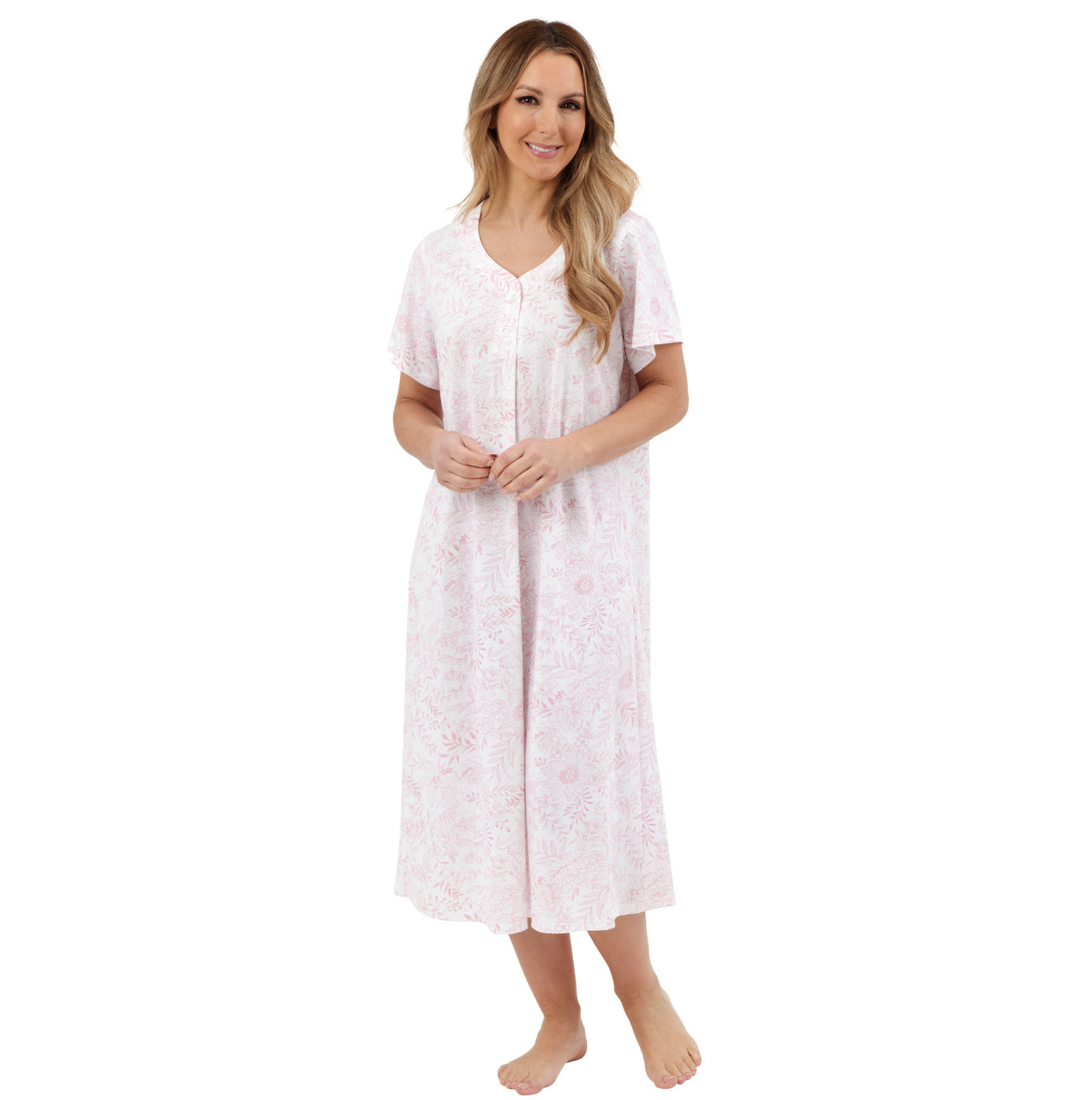 Poly Cotton Jersey Floral Print Pleat Front Short Sleeve 45" Nightdress